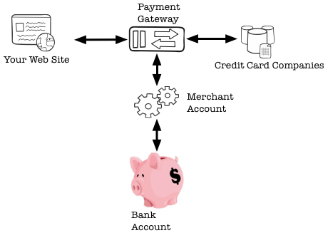 \[caption id="attachment\_3386" align="aligncenter" width="460"\]\[/caption\]This is the basic premise. Note that you can’t just mix and match pieces here willy-nilly. Different payment gateways and merchant accounts will accept different card types. And different payment gateways, merchant accounts, and bank accounts are setup to work together (or not). Your bank may also be able to act as the merchant account.